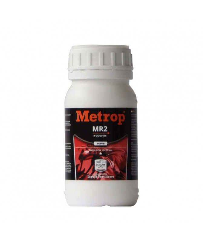 MR-2 METROP es capaz de estimular la fase de floración de las plantas para conseguir una cosecha abundante. Contiene una gran cantidad de Fósforo y Potasio para el crecimiento de raíces, y a la vez, de la planta. Además, los nutrientes de calidad contenidos en la mezcla hace que sea de fácil disolución en el agua, y de fácil absorción en las plantas.